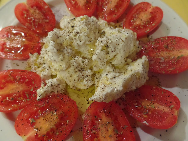 | Fontemanna ricotta, tomatoes from Yolanda, and olive oil from Katia's family trees. Oh, yes. |