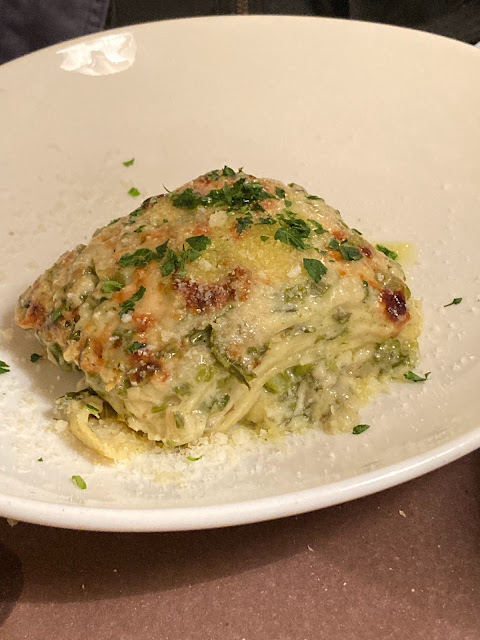 | This could be the best lasagna I've ever eaten. Asparagus and pea, with a silky béchamel sauce...my god, it was good. |